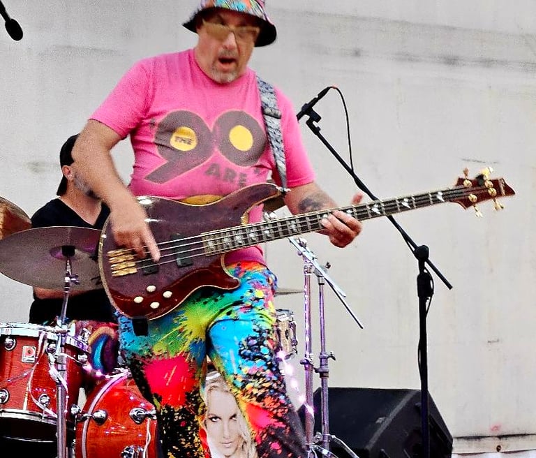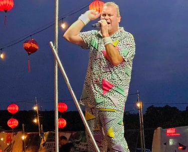 Plant. Snoop. Billie Joe. Posh Spice. Britney. JT. The driving force of AT90s's can sing em all - and more. Visually dazzling in a multi-colored pajama set, BD is a feast for the eyes and the ears. Also if you wanna sing on stage or request a song he's the guy to ask.